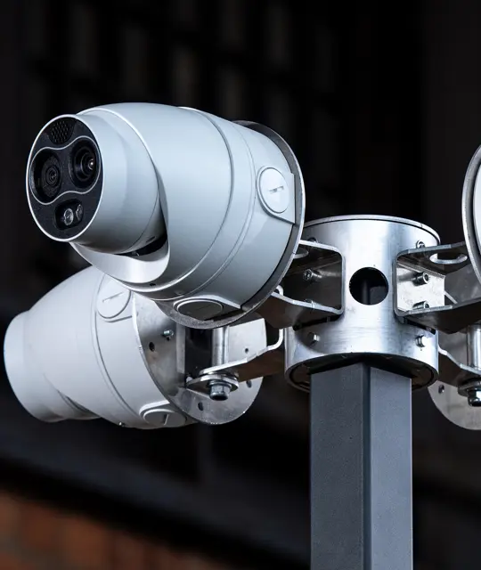 A solid mast is equipped with 4 fixed turret 8mp 4k cameras, offering 35m optical infra-red night vision.